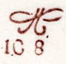 Марка красная надглазурная штампом ≈ стилизованная буква ╚П╩. Ниже ≈ надпись ╚1с╩ (первый сорт) и цифра ╚8╩. Изображена на фарфоровом блюдце (диаметр ≈ 137 мм). Датировка предмета: 1970√1980-е.