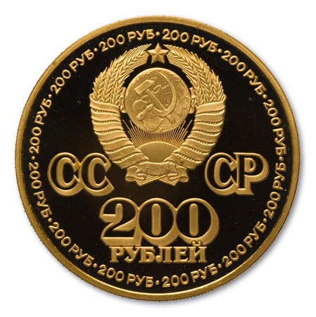 200 рублей ╚Крайний Север СССР╩. ЛМД. 1981. Пробные. Золото. Вес 17,18 г. Эстимейт 1 300-1 500 000 рублей. ╚Коллекционные русские монеты и медали╩. Фирма ╚Монеты и медали╩. Москва, 14 апреля