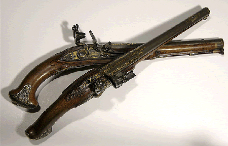 Разбег оценочных стоимостей тоже велик: от SEK 700 до 400 000, хотя эстимейты основного набора лотов колеблются в пределах до SEK 10 000. Самым дорогим лотом по предварительной оценке специалистов дома Probus являются пара кремневых пистолетов петербургского мастера И. Пермяка (1750√1785), с ложами орехового дерева, отделанные серебром и позолотой. Именно этот лот оценен в сумму SEK 400 000. Эстимейты остальных предметов ниже как минимум на порядок. Другой любопытный лот из разряда огнестрельного оружия √ кремневый пистолет, определенный экспертами аукционного дома как оружие ╚восточного╩ происхождения (арабские страны, рубеж XVIII√XIX). Этот по-восточному изящный предмет из стали и серебра оценен в SEK 30 000.
