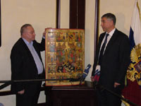 22 января 2006 г. Президент РФ В.В. Путин в ходе встречи в Патриарших палатах Кремля с патриархом Московским и всея Руси Алексием Вторым передал икону Русской православной церкви.