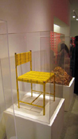 На двух этажах, занимаемых выставкой, вниманию посетителей представлены мебель, керамика, мультимедиа, произведения из стекла и металла, электроника и серия репродукций. Все выставленные предметы, выполнены из различных материалов √ пластмассы, ткани и стекла. Использование новых интересных форм помогает лучше и глубже отразить сложность современной материальной культуры и фантазии авторов. К примеру, ╚Стул╩ работы Александра Реха (Alexander Reh▓s), на первый взгляд весьма обычен, но после более внимательного осмотра, становится ясно, что он сделан из патронов дробовика, которые по мысли автора обладают прекрасными эстетическими качествами. На выставке также представлена серия работ относящихся к индустриальному и послевоенному периодам.