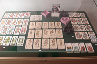 Непременно заинтересует зрителей зал, посвященный гадательным картам. На столике стоят песочные часы √ сеанс гадания длился ровно сорок минут. Здесь же можно посмотреть уникальное собрание карт Таро. В разделе современных карт стоит отметить так называемые ╚революционные╩ карты, с изображениями Маркса, Ленина и Троцкого. Помимо этого, есть карты с изображением Администрации США и недавно ушедшего в отставку российского кабинета министров во главе с Михаилом Фрадковым. Не менее интересны представленные в этом же разделе тюремные карты, сделанные заключенными из обоев и расписанные сажей и кровью. Дополняют экспозицию произведения декоративно-прикладного искусства, для декорирования которых художники использовали карточную символику и изображение атрибутов, сопутствующих игре, а также редкие счетные жетоны и фишки.