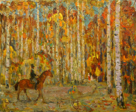 С. Тумаков. Болдино. Осень в Лучиннике. 1996. Картон, масло. 50,0 х 60,3