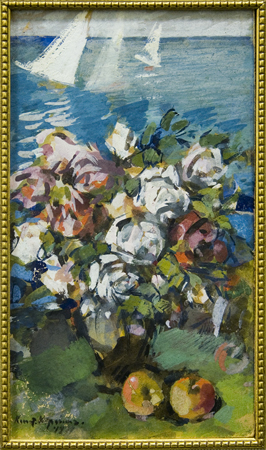 Эксперты Государственного Русского музея уверены, что гуашь ╚Букет на фоне моря╩ представляет собой художественную и коллекционную ценность.