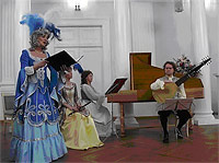 В Белом зале Государственного музея-заповедника ╚Петергоф╩ 13 июля состоялся концерт-спектакль под названием ╚Танец в честь Короля-Солнца╩. Концерт проводился с целью познакомить зрителя с традициями танца, музыки и вокала французского музыкального театра конца XVII начала XVIII вв. Как известно, как раз в это время в искусстве Европы господствует стиль Барокко. В этот момент в среде французской аристократии складывается новый образ мышления, поведения и быта. Идеалами высшего света стали античные боги и герои, а отражением этого нового веяния стало создание величественных и элегантных танцев.